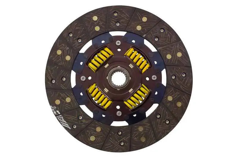 With the ACT Perf Street Sprung Disc, you are backed by the best one-year warranty in the industry. This performance street disc is the most popular choice among enthusiasts, featuring high copper content for better heat transfer and enhanced clutch performance. Whether on the street or at the track, this disc is engineered to meet your driving demands with increased strength and reliability.