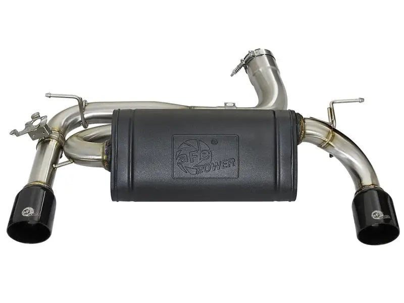 - Dual 4" Gloss Black Tips: The sleek dual 4" diameter, gloss black, 304 stainless steel tips are finished with a laser-etched aFe power logo, adding an aggressive aesthetic to your vehicle.