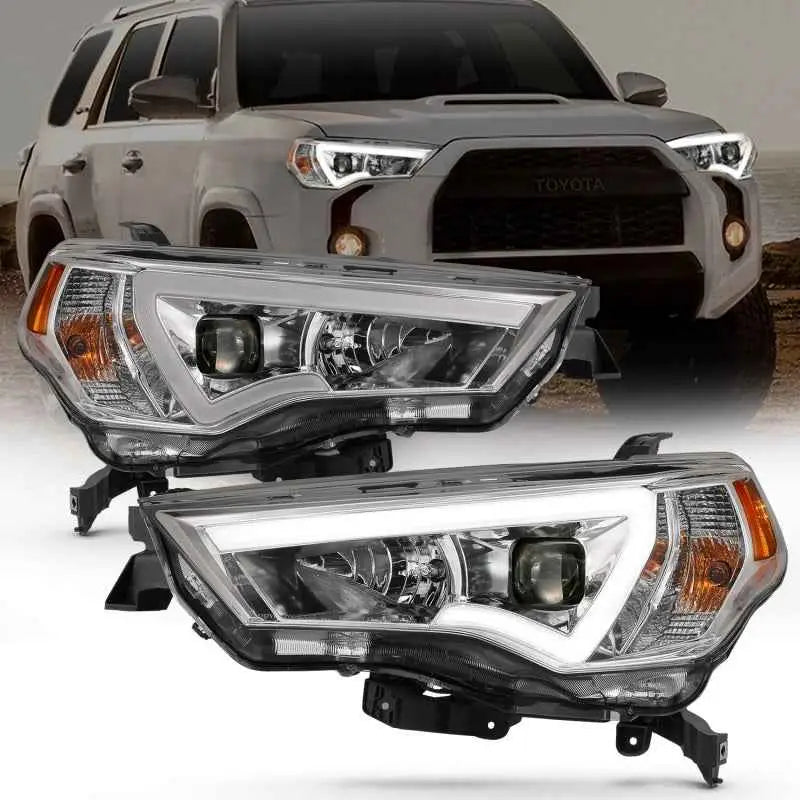 ANZO 14-18 Toyota 4 Runner Plank Style Projector Headlights Chrome w/ Amber