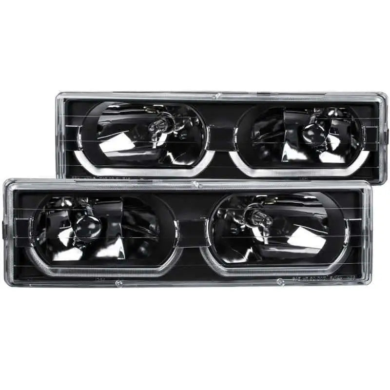 ANZO 1988-1998 Chevrolet C1500 Crystal Headlights Black w/ Low - Brow
