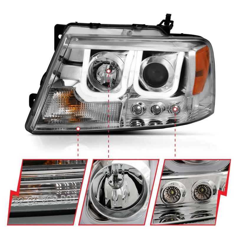 ANZO 2004-2008 Ford F-150 Projector Headlights w/ U-Bar Chrome