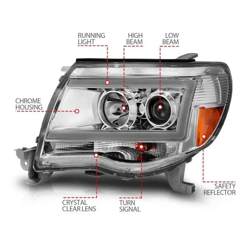 ANZO 2005-2011 Toyota Tacoma Projector Headlights w/ Light Bar Chrome Housing