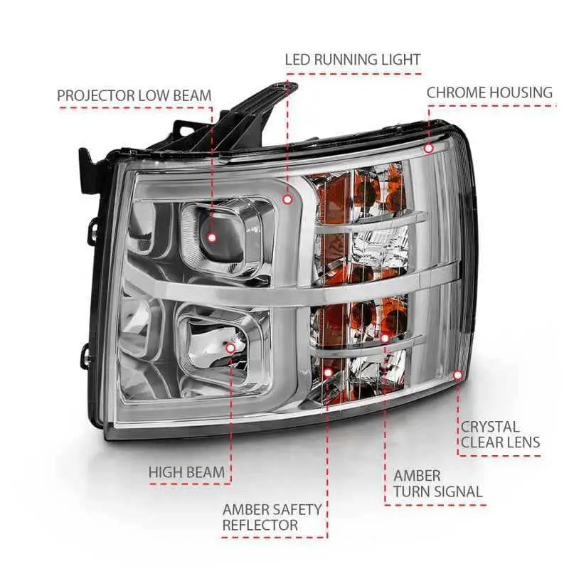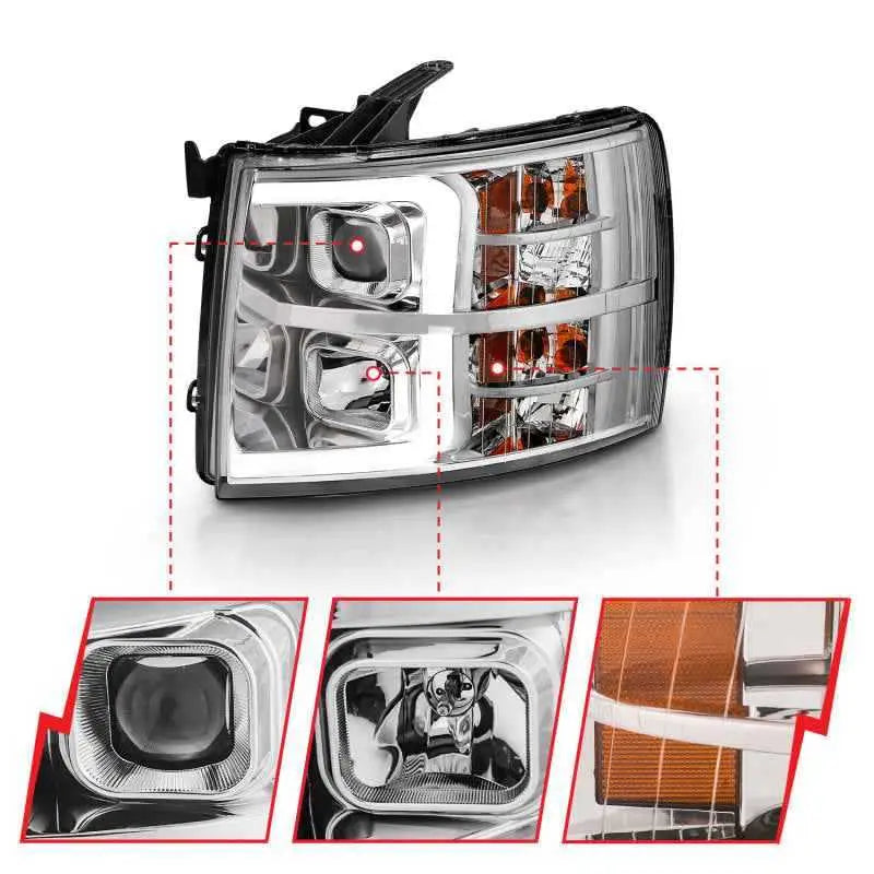 ANZO 2007-2013 Chevy Silverado 1500 Projector Plank Style Chrome Amber