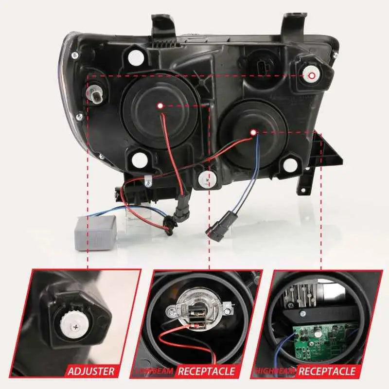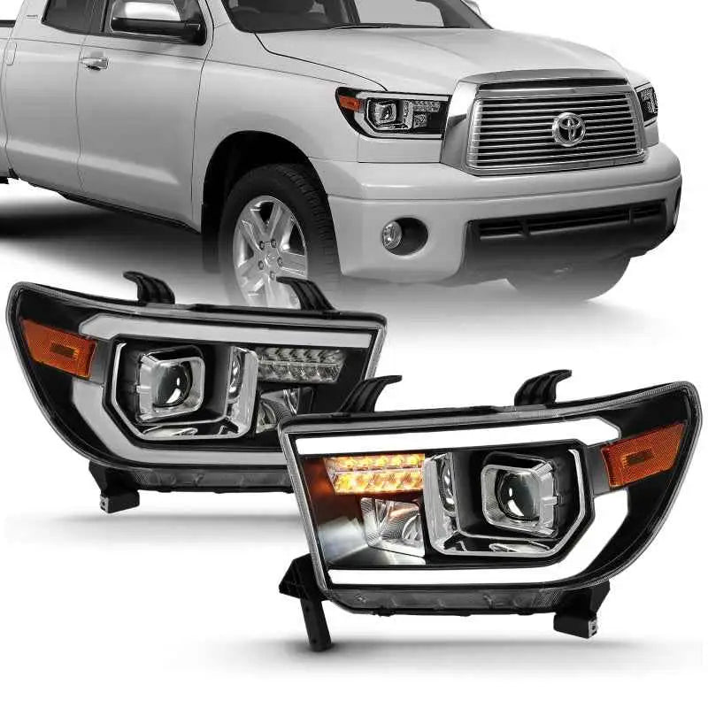 ANZO 2007-2014 Toyota Tundra Projector Light Bar H.L Black Amber(Led High Beam) (Halogen Version)