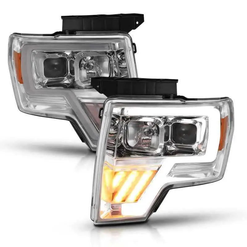 ANZO 2009-2014 Ford F-150 Projector Headlight Chrome Amber