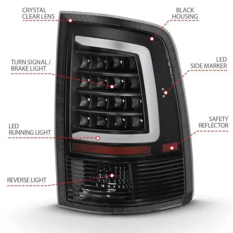 ANZO 2009-2018 Dodge Ram 1500 LED Taillight Plank Style Black w/Clear Lens