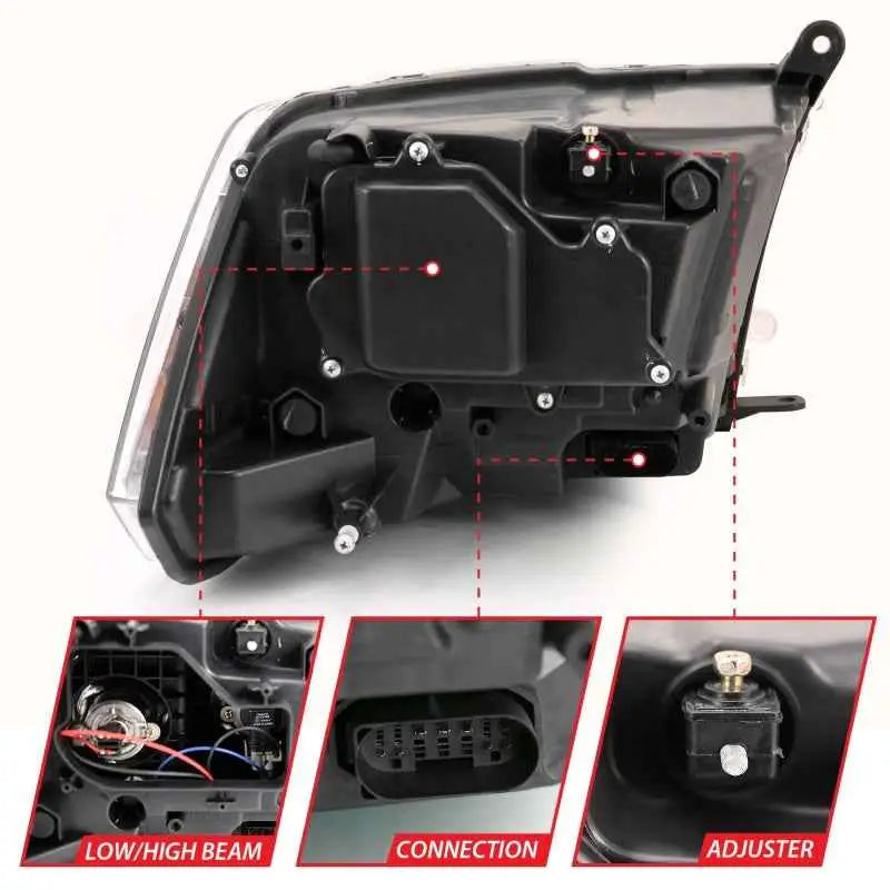 Upgrade your Dodge Ram 1500 with the ANZO Projector Headlight Set, designed specifically for model years 2009 to 2018. This headlight set not only enhances your vehicle's appearance but also delivers superior lighting performance.