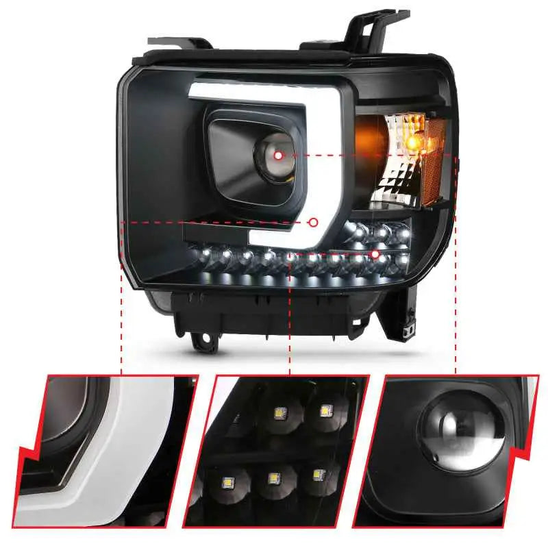 ANZO 2014-2015 GMC Sierra 1500HD Projector Plank Style Headlight Black with DRL