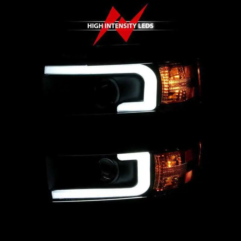 ANZO 2015-2016 Chevrolet Silverado Projector Headlights w/ Plank Style Design Black w/ Amber