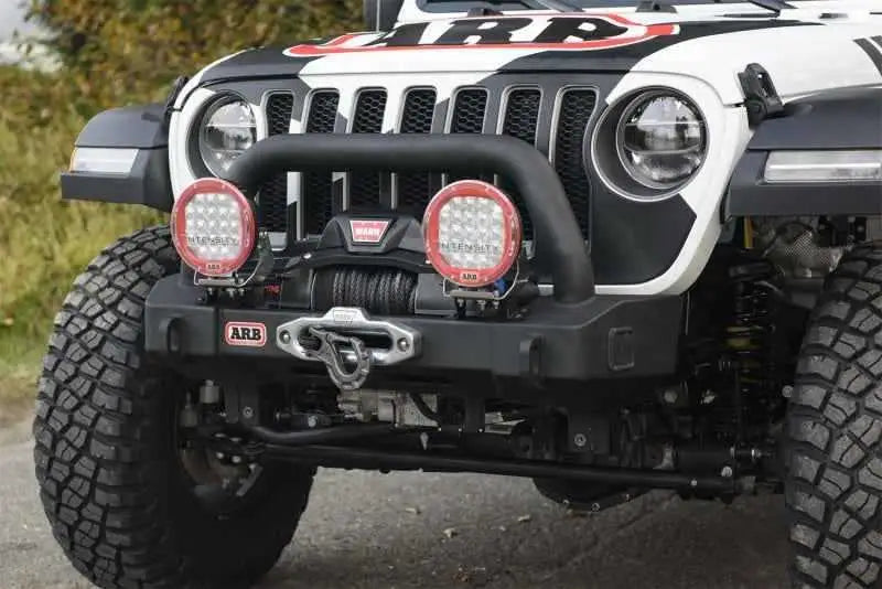 ARB Stubby Bumper; Integrit? Textured Black Powder Coat Finish; Recovery Jack Points; Tow Points; Driving Light Mount; Incl. Fog Lights; Winch Install Kit;