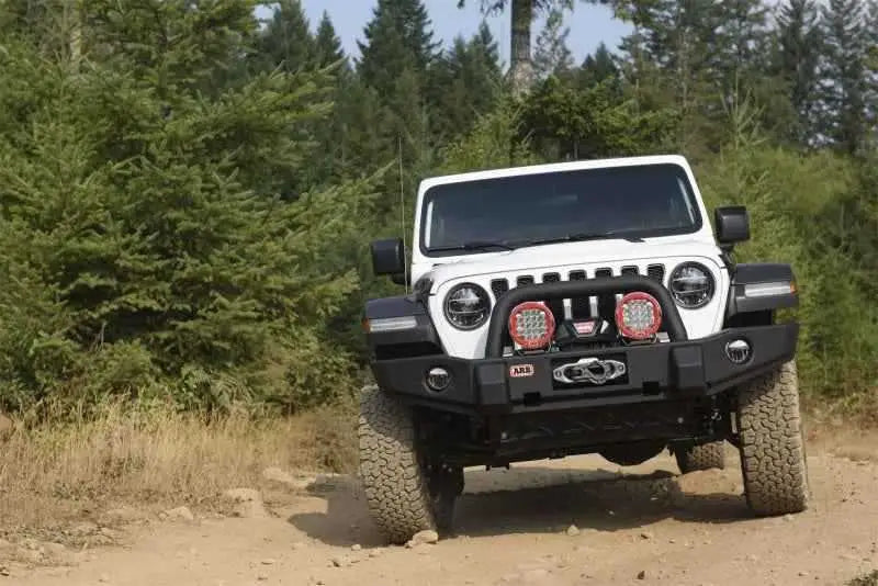 Inspired by the classic ARB Wrangler JK Deluxe bumper is the newly developed Wrangler JL Deluxe bumper designed to provide maximum full width protection while remaining practical and stylish. Outer wings have been designed specifically to suit both Rubicon and non-Rubicon factory flares and are able to clear up to a 37" tire. Included with the bumper are brackets for retention of both factory halogen or LED fog lights to help maintain a clean OE look. When the need for recovery is arises, the JL Deluxe bumper is ready and full of features. Incorporated is a winch mount platform that will allow the mounting of most low mount style Warn winches up to 10,000 lb. Welded 0.8"recovery points included for snatch or winch double line recovery pulls. Jack points are also included in the center pan section and are designed to safely lift the JL using the ARB JACK or a mechanical recovery jack. Antenna tabs on the main tube can be used for fitment of communication antennas or additional driving lights. JL Deluxe bumpers are pre-treated with a zinc shield for superior corrosion resistance. The bumper is then powder coated in an Integrit textured finish which is designed for maximum aesthetic appeal in an ultra-low sheen matte finish. Integrit textured powder coat is uniquely formulated to replicate the appearance of automotive grade black plastic on steel or alloy fabricated products. Visually the finish is similar to the OE flares on the JL.