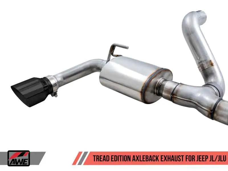 Elevate your Jeep Wrangler JL/JLU's performance and style with the AWE Tuning Tread Edition Axle-Back Dual Exhaust. Designed specifically for 2018 and newer models, this exhaust system not only enhances your vehicle's sound but also adds a sleek, aggressive look with its diamond black tips.