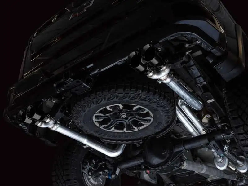 AWE Tuning 22-23 GMC Sierra 1500 AT4X 6.2L 0FG Catback Split Dual (Flat Bumper) - Diamond Black Tips
