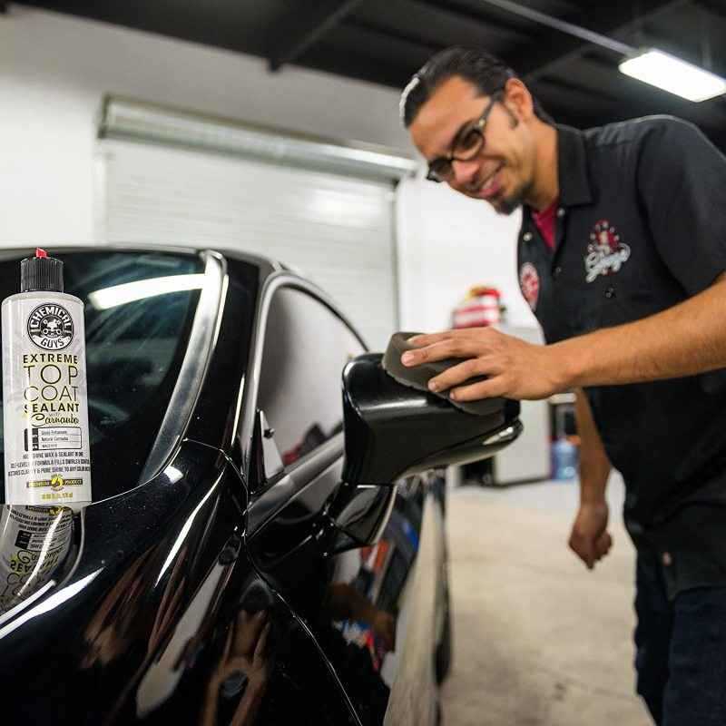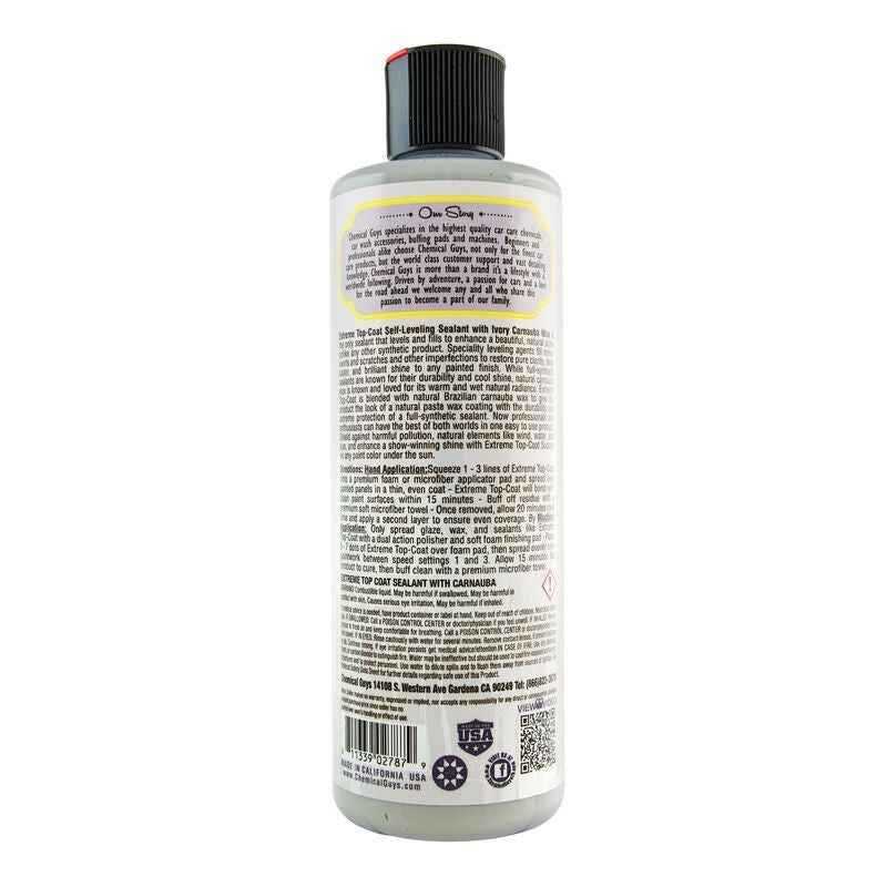Whether you're a car enthusiast or just want to keep your vehicle looking its best, the Chemical Guys Extreme Top Coat Carnauba Wax & Sealant is the perfect solution. Available in a convenient case of 6, you’ll always have a bottle on hand for your next detailing session.