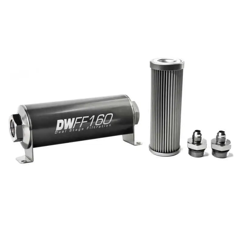 DeatschWerks Stainless Steel 6AN 10 Micron Universal Inline Fuel Filter Housing Kit (160mm)