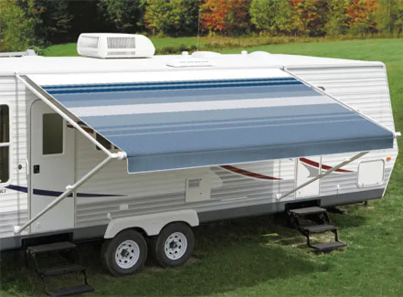 Experience carefree outdoor living with the ER22006C Carefree Fiesta-Wht 22'Wht Blsf. This versatile and stylish 22-foot white awning with black stripes is designed to elevate your outdoor space and provide optimal protection from the sun.