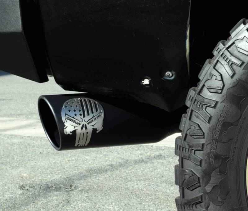 Upgrade your ride with the Gibson Patriot Skull Series Cat-Back Single Exhaust, a perfect fit for your 2014-2015 GMC Sierra 1500 SLT equipped with a 5.3L engine. This exhaust system is designed to not only enhance performance but also provide a striking appearance and an aggressive sound that will turn heads.