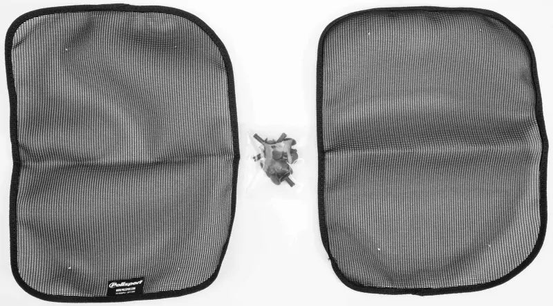 Introducing the ultimate protection for your radiator with the Mesh For Radiator Louvers Black Kaw by Polisport. Designed with precision and crafted from high-quality materials, these radiator louvers are not only functional but also enhance the aesthetic appeal of your motorbike.