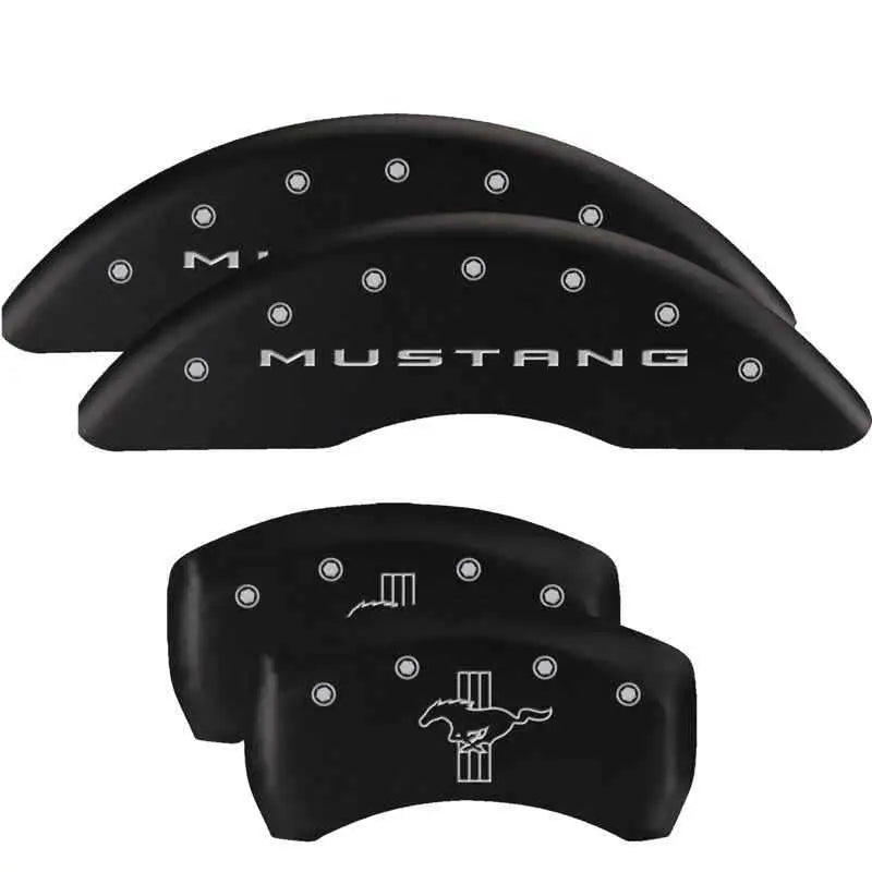 MGP 4 Caliper Covers Engraved Front 2015/Mustang Engraved Rear 2015/Bar & Pony Black finish slvr ch