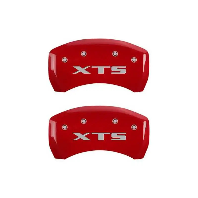 MGP 4 Caliper Covers Engraved Front Cadillac Engraved Rear XTS Red finish silver ch