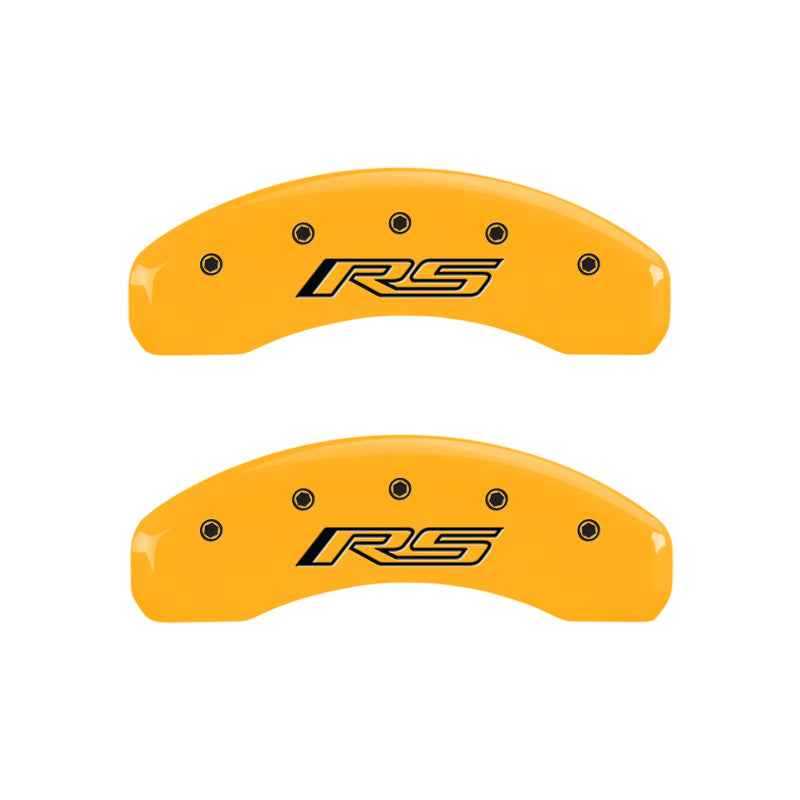 MGP 4 Caliper Covers Engraved Front Gen 5/Camaro Engraved Rear Gen 5/RS Yellow finish black ch