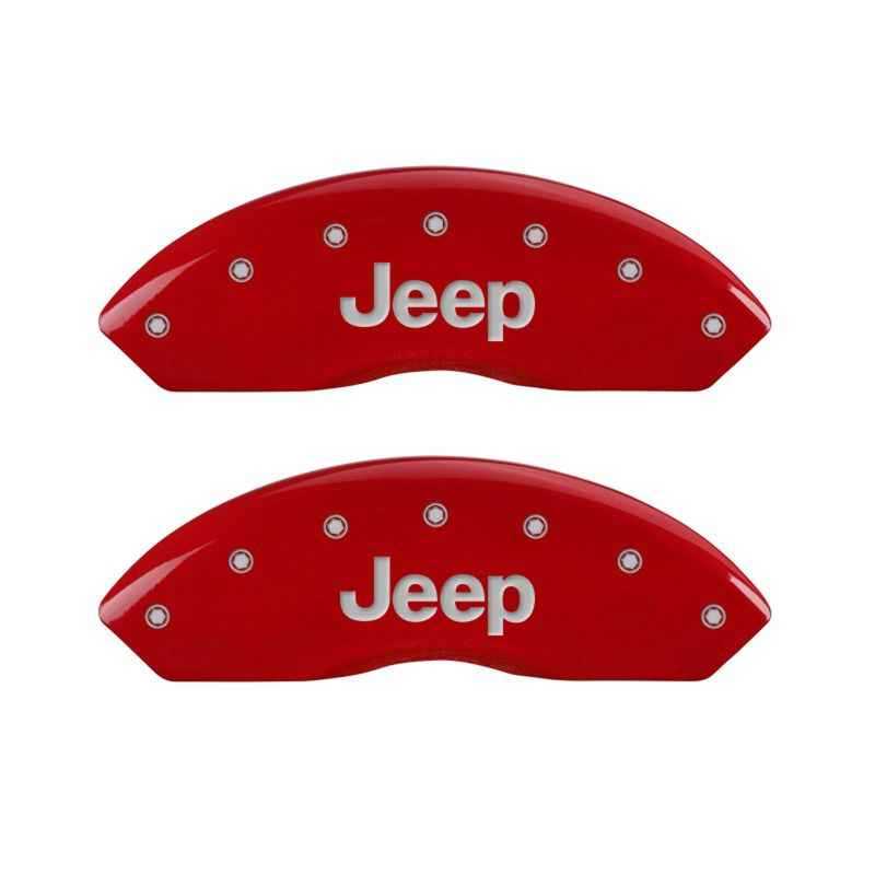 MGP 4 Caliper Covers Engraved Front JEEP Engraved Rear JEEP Grill logo Red finish silver ch is backordered and will ship as soon as it is back in stock.
