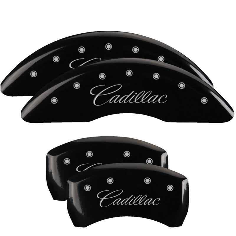 MGP 4 Caliper Covers Engraved Front & Rear Cursive/Cadillac Black finish silver ch