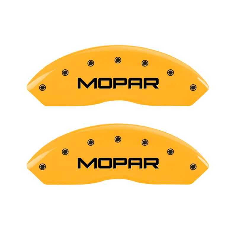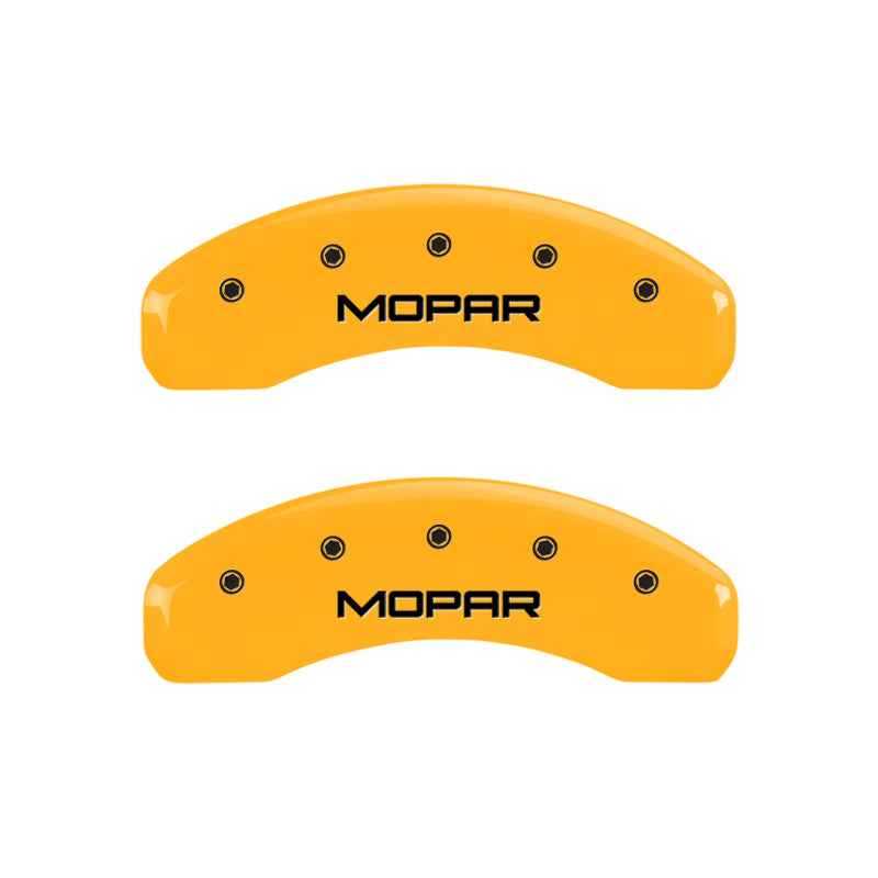 MGP 4 Caliper Covers Engraved Front & Rear MOPAR Yellow finish black ch is backordered and will ship as soon as it is back in stock.