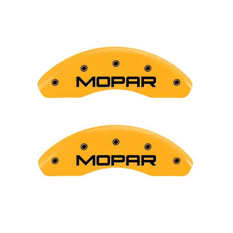 MGP 4 Caliper Covers Engraved Front & Rear MOPAR Yellow finish black ch is backordered and will ship as soon as it is back in stock.