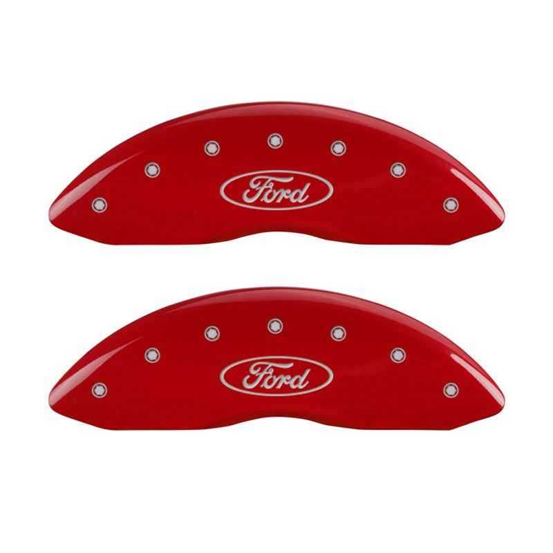 MGP 4 Caliper Covers Engraved Front & Rear Oval logo/Ford Red finish silver ch