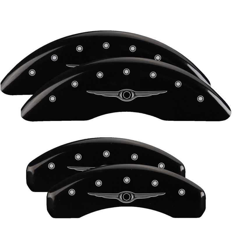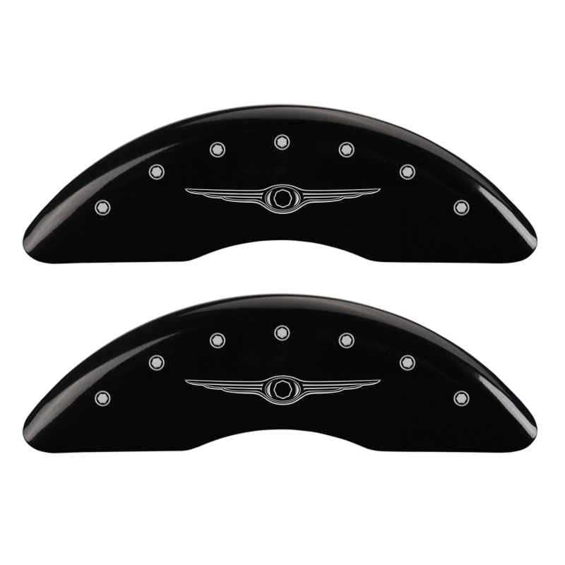 MGP 4 Caliper Covers Engraved Front & Rear Style 1/Chrysler Wing Black finish silver ch