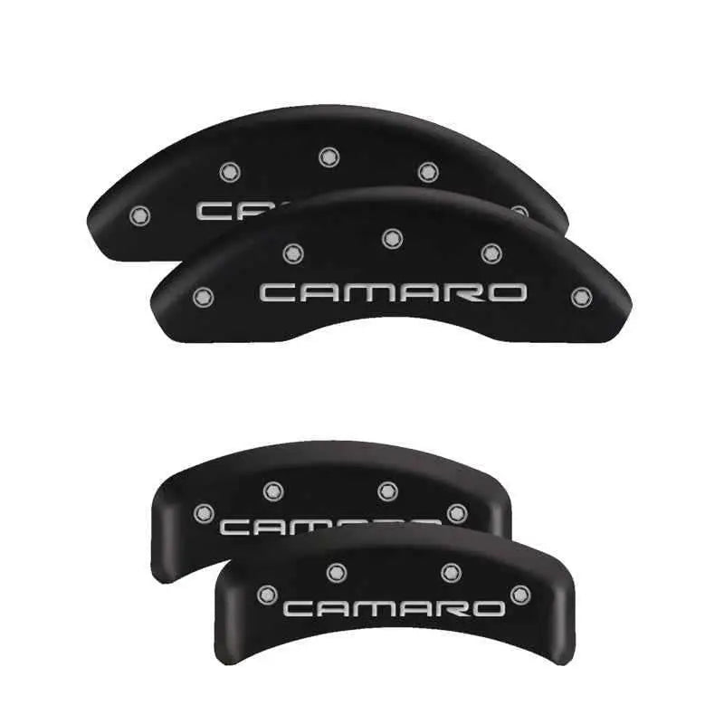 MGP 4 Caliper Covers Engraved Front & Rear With Stripes/Challenger Black Finish Silver Characters