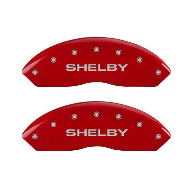 MGP 4 Caliper Covers Engraved Front Shelby Engraved Rear Tiffany Snake Red finish silver ch