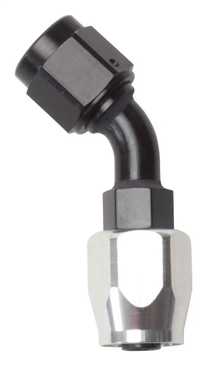 Choose the Russell Performance -6 AN Black/Silver 45 Degree Full Flow Hose End for a reliable, high-quality solution that meets the demands of any performance enthusiast.
