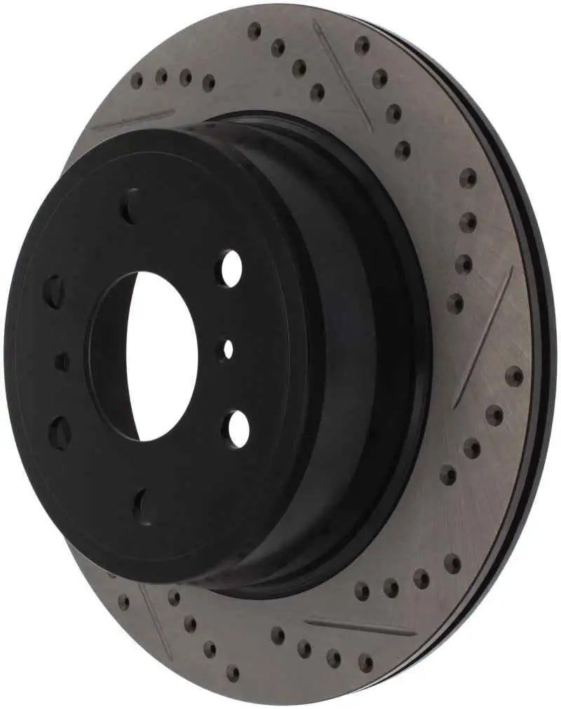 Upgrade your braking system today with the StopTech Rear Right Slotted & Drilled Rotor and enjoy the perfect balance of style, safety, and performance.
