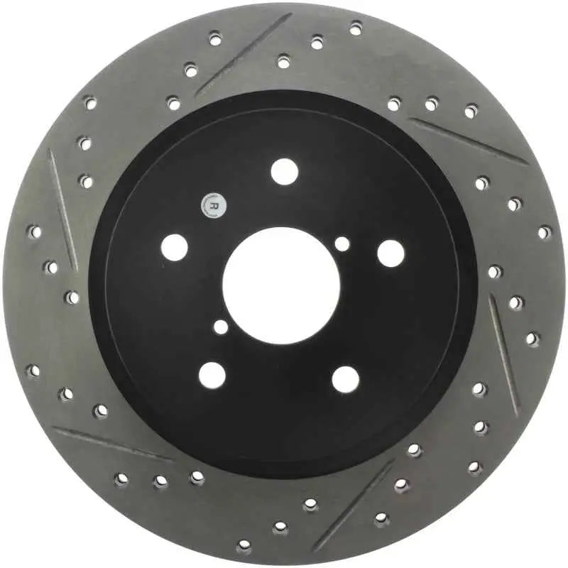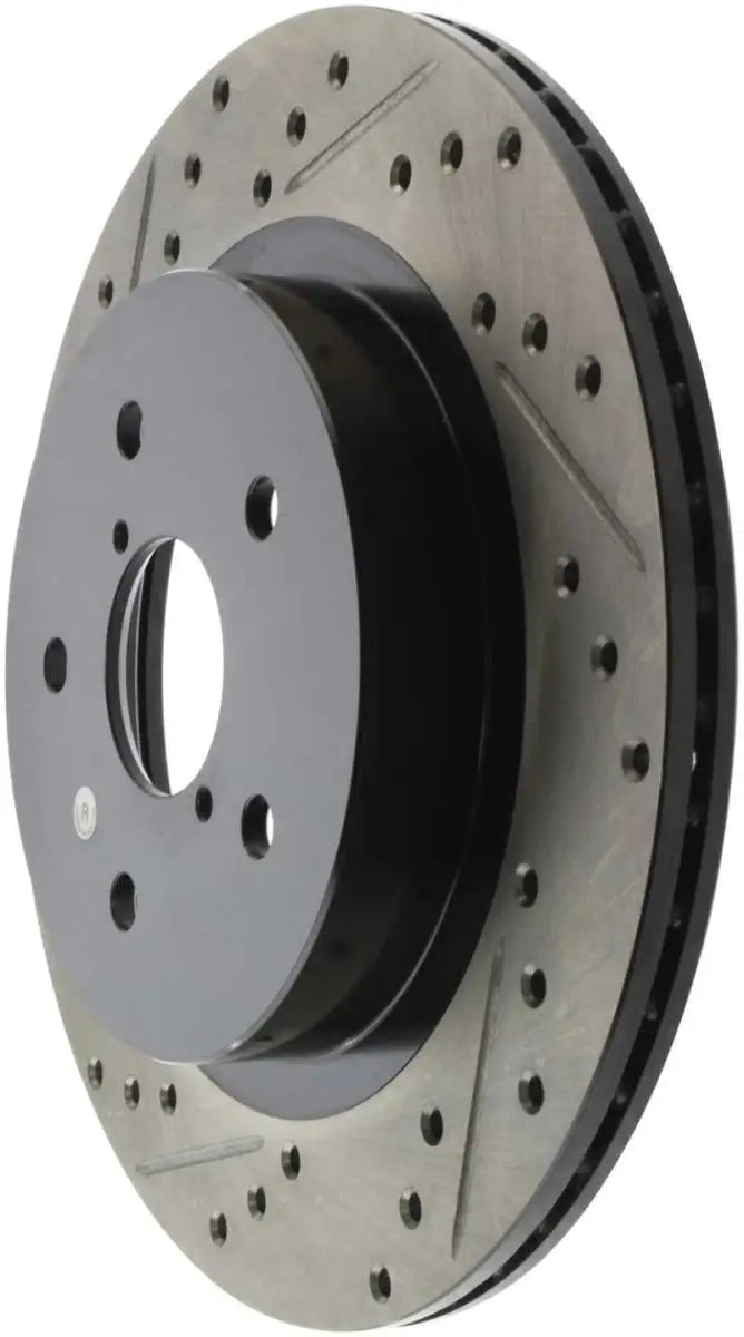 Transform your Subaru's braking performance and aesthetics with the StopTech Sport Slotted & Drilled Rear Right Rotor. Elevate your driving experience today!