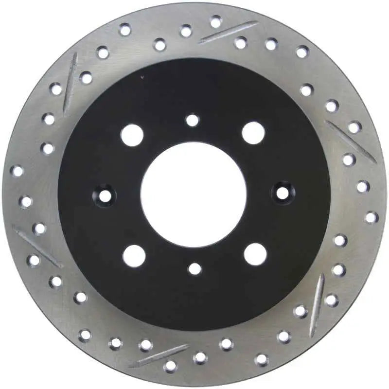 Elevate your driving experience with the StopTech Slotted & Drilled Right Rear Rotor, where performance meets style.
