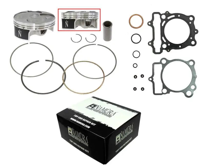 - Top End kit includes: piston, rings, wrist pin, clips, top-end bearing, and gasket kit