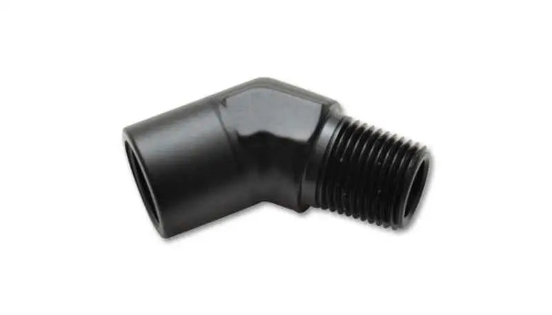 Upgrade your automotive setup with the Vibrant 1/4in NPT Female to Male 45 Degree Pipe Adapter Fitting and experience the difference that quality and precision can make!