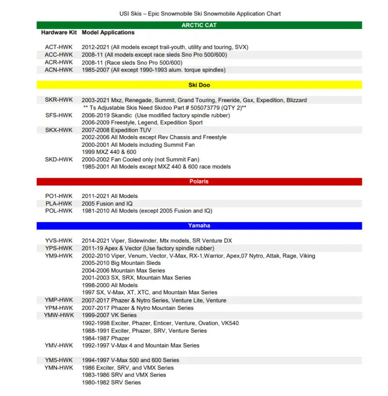 - Mount kits designed to fit all USI Skis